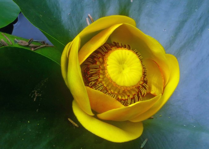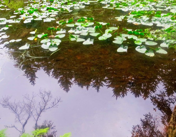 I came on a lovely pond that was growing pond lilies and was able to catch a reflection shot, but I also noted a few yellow blooms…