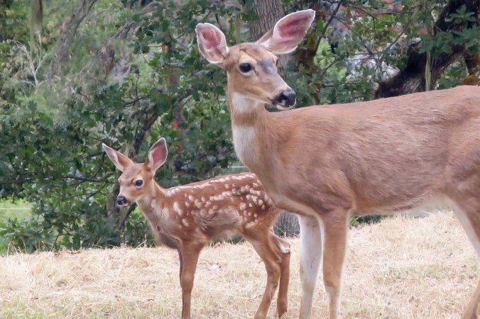 Aww, I loved these. I never get tired of baby deer spots. I keep the birdbath filled for the deer as well. The birds use it too, once the deer have cleared out. I’ve had to stop filling the bird feeder because the deer have discovered that it includes bits of corn. Now I just sprinkle bird feed on the ground, very thin, so the deer don’t try to lick it up. They are lovely, and such pests.