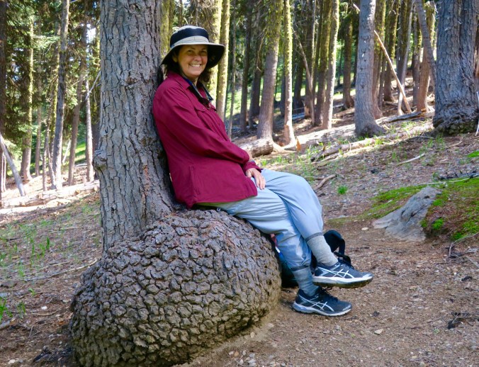 Peggy found this natural chair along the trail, perfect for the weary hiker. Her grin says it all.