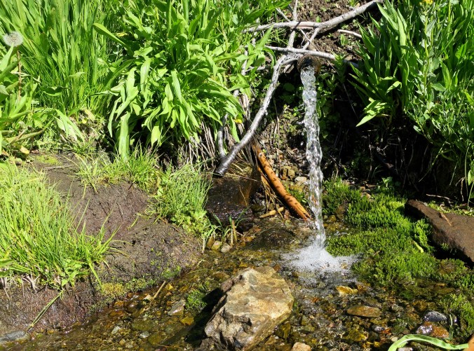 Water can be plentiful or precious in the mountains, and a spring attracts both animals and people. Through hikers on the PCT pay close attention to where the next water may be found. It may be just around the corner or 15 miles up the trail. A pipe delivered water directly from the spring to thirsty hikers at Sheep Camp. And it was cold and delicious!