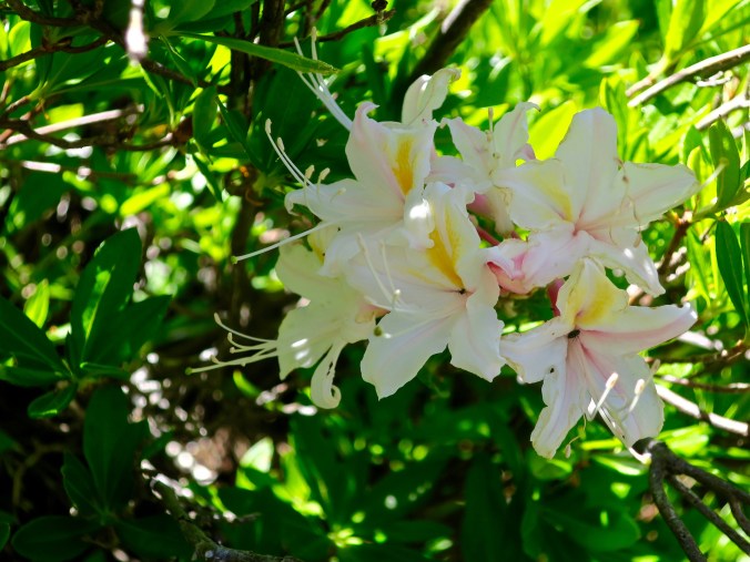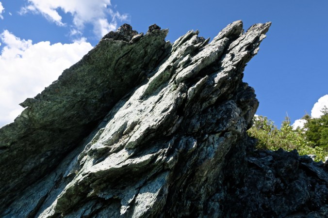Rocks also captured our attention and schist, a metamorphic rock, was common along this section of the trail. Quartz, which Peggy loves, is often found with schist. In fact, Peggy likes to pick quartz up to take home for her rock garden. There was no picking up quartz to go in our backpacks this time, however!