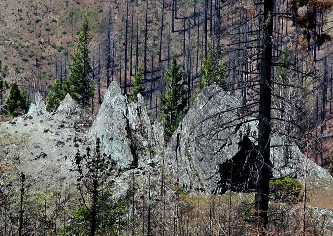 We found these strange looking schist stones in the burn area that looked something like tombs in a fantasy movie. All that was missing was a winged demon…