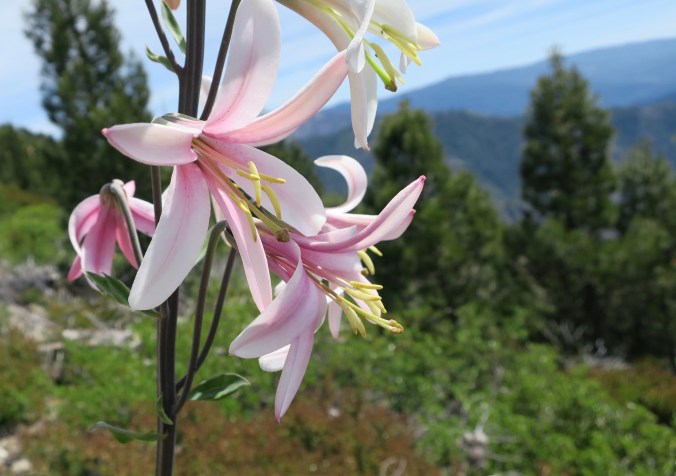 The trail from Cook and Green Pass that goes around the Red Buttes Wilderness goes up a bit. Peggy went through 99 bottles of beer on the wall, and then 99 bottle of rum, and then 99 bottle of wine, which was beginning to sound a bit like 99 bottles of whine. 🙂 The hot afternoon sun didn’t help. Flowers did, however. We had found them all along the trail from Mt. Ashland to Seiad. Here are a few of the many: