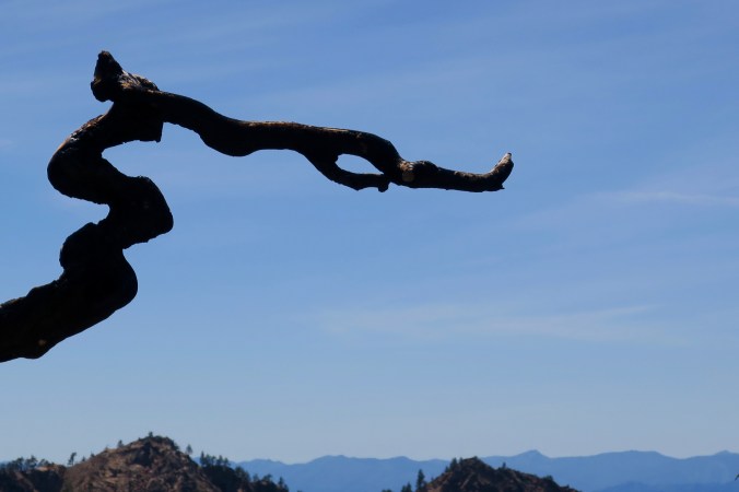 Fascinating wood sculptures also catch my eye and lead me detouring off the trail to catch their photos. This is manzanita that had been killed by fire.