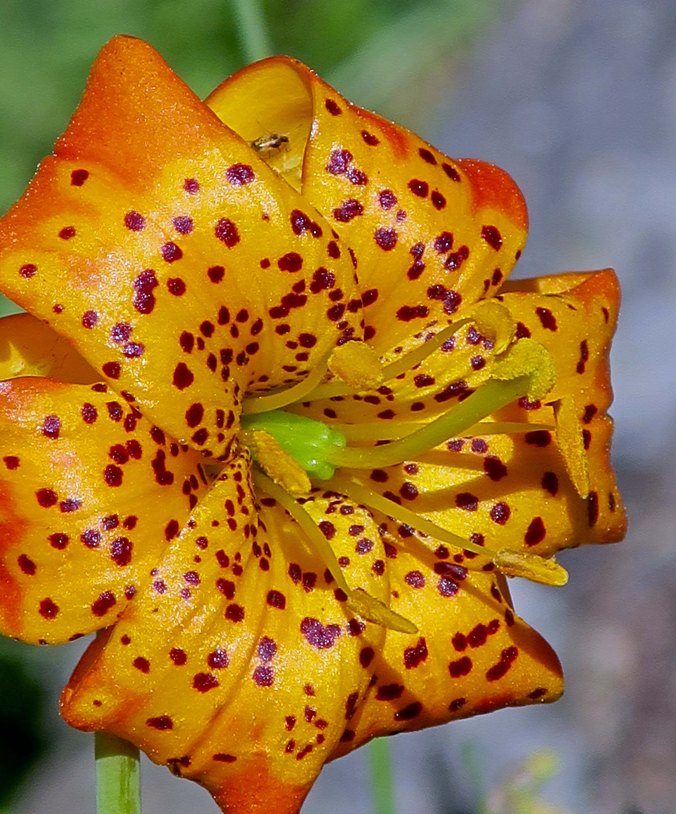 But enough seriousness, now it’s time for some fun— brought to you courtesy of my being off the trail for a couple more days. In addition to beautiful scenery and wood sculptures, the trail from Etna Summit to Castle Crags was filled with flowers, some interesting characters, colorful rocks, a seemingly tame frog, pitcher plants, and a very colorful caterpillar. Here are some photos. Enjoy.