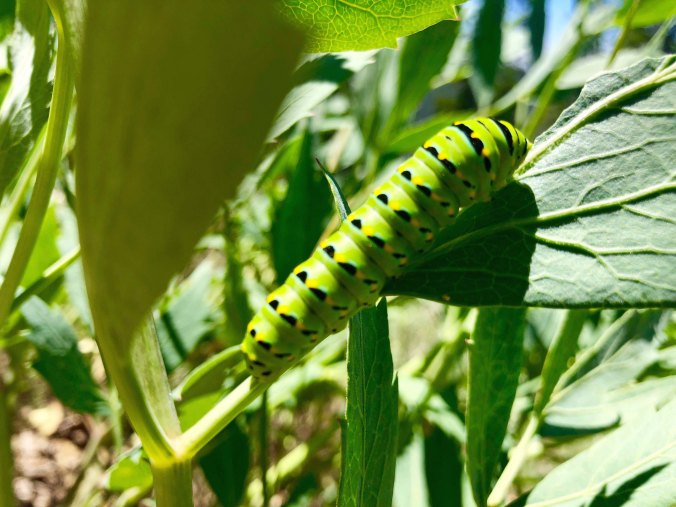 This fat caterpillar that was busy devouring leaves also caught our attention. (Photograph by Jay Dallen.)