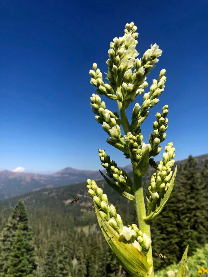 Columbine with sparkling dead trees in the background- amazing! Also I love the cornflower about to bloom, with eager bees waiting for the blooms. Castle Crags are really beautiful. I have not yet hiked there.