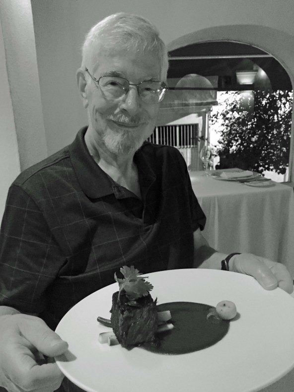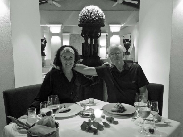 That’s it for the galleries, but it is not the end of the story. Peggy and I weren’t finished with our desire to revisit the Cafe des Artistes. So we made reservations and went there for our 28th Anniversary dinner. The ambience was superb, the waiters great, and the food delicious. Each year, Puerto Vallarta has a celebration featuring world-famous chefs and we ended up with one of the top chefs from Mexico City. It was a close to a perfect evening. We had to rely on our iPhone for photos. I had previously left my camera behind in a taxi and we weren’t able to recover it. The phone didn’t do well with capturing colors in the dim light, however, so I have rendered these photos in black and white.