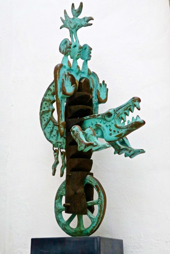 NEXT POST: It’s time for the Day of the Dead. We missed it by a few days, but there were plenty of sculptures and crafts around to remind us of the event. Get ready for some bone-rattling fun.
