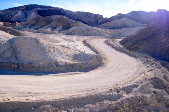 Our Toyota Tacoma pickup makes its way down a road that was once traveled by 20 mule teams hauling borax.