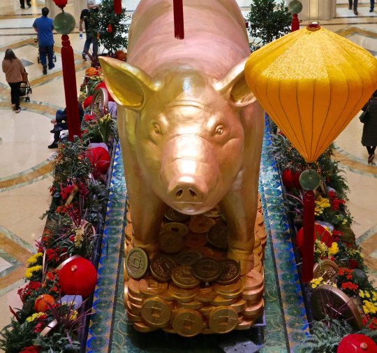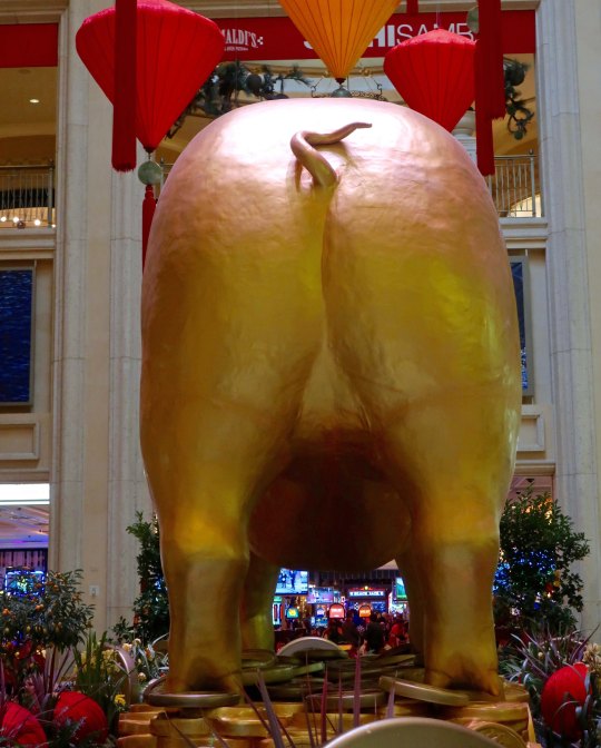 Usually when Peggy and I visit Las Vegas, I do a complete post on the Strip. Not this time. We went downtown to the Venetian Hotel and discovered that it was the Chinese Year of the Pig. The pig shared a room with a Burning Man sculpture that Peggy and I had admired on one of our many trips to the event.
