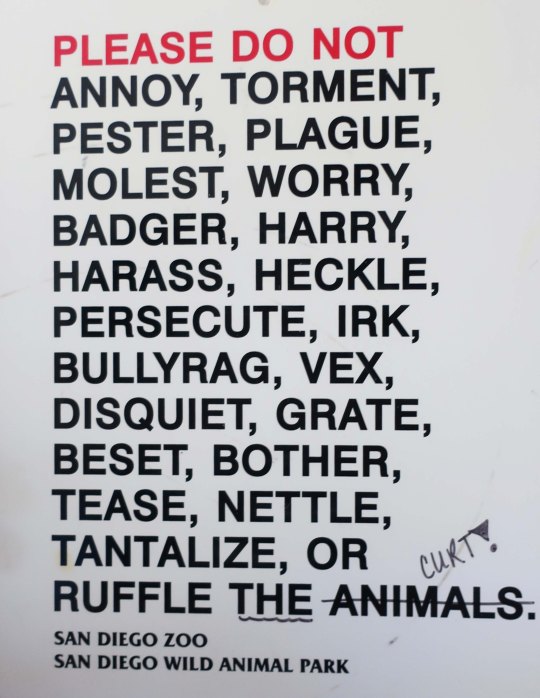 This is here because it reflects Tasha’s sense of humor, and hopefully mine. We were visiting the San Diego Zoo, which I really like. But the visit went on and on and on. And I got a little grouchy. It happens. So I left Peggy, Tasha and the grandkids and headed back to the car to read. When the family finally returned, Tasha proudly presented me with this.