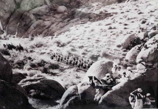 The British Empire’s troops are about to be ambushed by the Thuggees in “Gunga Din.” Thuggees were a cult of assassins that strangled people and existed in India from the 13th to the 19th Century.