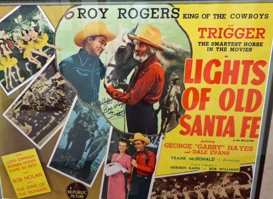 Note where Trigger is in relation to Dale Evans and Gabby Hayes in this movie poster. He’s “the smartest horse in the movies,” the poster declares. It seems he proved it by signing the poster. Must have held the pen in hid mouth.