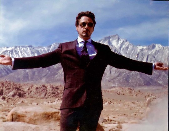 Robert Downey Jr., aka Tony Stark in “Iron Man” enjoys a photo op in the Alabama Hills with Mt. Whitney looming behind.