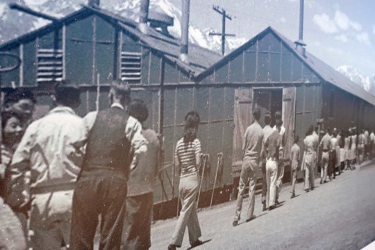 The bombing of Pearl Harbor naturally led to a fear of Japan, particularly on the West Coast. But it also released a deep prejudice against Japanese Americans that already existed. This large photo greets visitors to Manzanar.