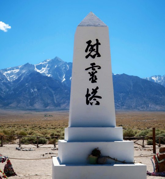 This iconic monument to ‘console the souls of the dead’ with its dramatic Sierra Nevada backdrop is located in a small graveyard at the back of Manzanar. But, for me, it also serves as a memorial to the people who were rounded up and corralled here, to their heroic efforts to creat a bit of America in what was basically a concentration camp, and to the dark days in American history their confinement represents. Lest we forget.