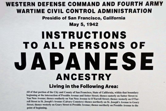On May 5th, based on information provided by the Census Bureau, this sign went up wherever Japanese Americans were living on the West Coast. They were given two days to gather a few belongings and make whatever arrangements they could for their homes, businesses, etc. Note, the Census Bureau denied that it had provided the information up to 2007.