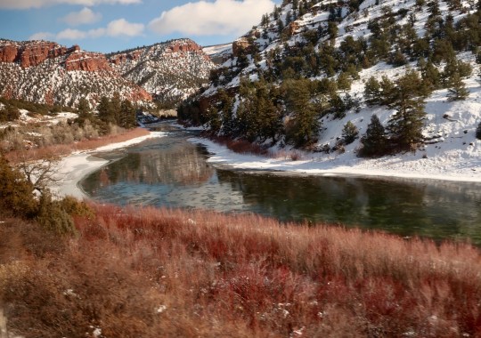 As for my photos today, I want to share one segment of the journey with you: our trip across the Rocky Mountains. It was spectacular including snow, beautiful views of the river and gorgeous red rocks. Starting at Glenwood Springs we followed the Colorado River up toward its source and then dropped down into Denver. The photos speak for themselves. Enjoy.