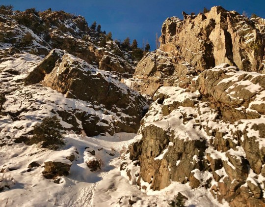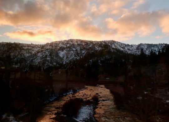 My favorite photo’s the one that shows the snow covering the rocks, making it look like a set of miniature mogols. I wondered as I was reading whether you had the sort of lee cloths that keep sleepers in their bunks on a boat. Sure enough, there it was: your mention of the netting that was strung along the bunks. Your mention of the train’s clicky-clack in places brought back memories of sleeping in the back seat of the car when I was a kid. Iowa highways at the time were poured in rectangles with some sort of tar between them as expansion joints. Every time you drove over one, there was “the sound.” it was comforting, actually. I’m not sure how comforting I’d find the sense that a train was taking a curve too fast, though.