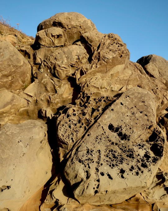 At first I thought I saw a face here, maybe George Washington in his dotage. Then I realized that something very big had eaten a chunk out of the rock.