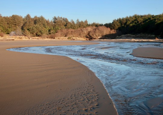 I figured the Devil had to cook with ghost peppers, and that got me excited. I like my food spicy hot and it doesn’t get much hotter. A tiny bit goes a long, long way, even for me. Lacking that, I thought I might at least find a churning, boiling sea like you find at the Devil’s Churn. Instead, I found a quiet, bucolic scene. Crooked Creek flowed peacefully out to the ocean.