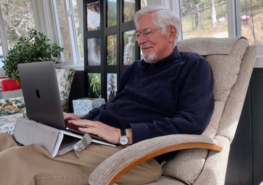 Peggy took this photo of me working in my comfy chair.