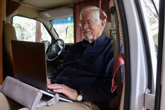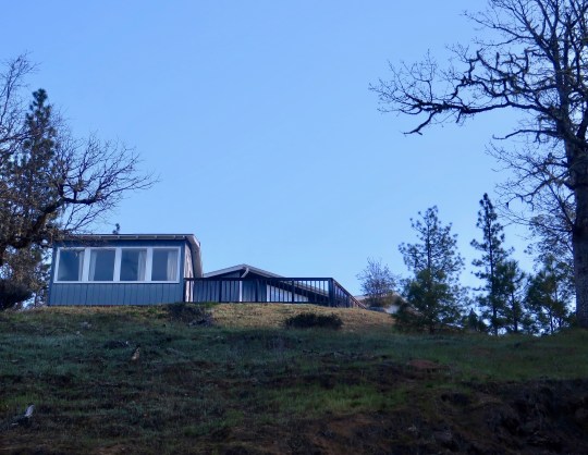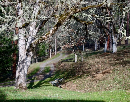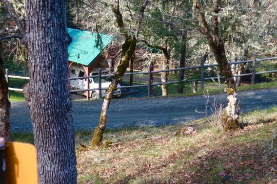 Quivera the Van’s home in the pole barn makes an excellent writing space. It is both protected and outside. It also sits on the edge of the Rogue River-Siskiyou National Forest. I took this photo from the national forest sign that marks the edge of our property.