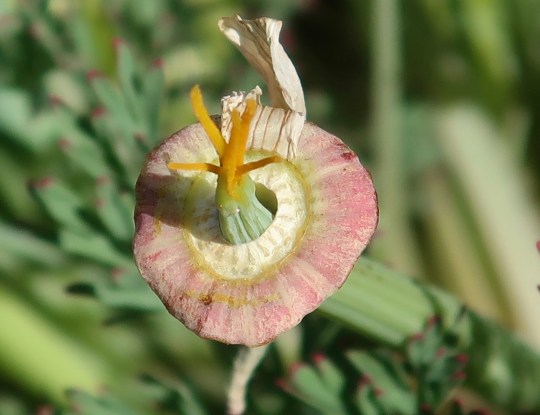 Once the poppy petals reach this point they are about to drop, which leads to the next phase of the plant’s life.