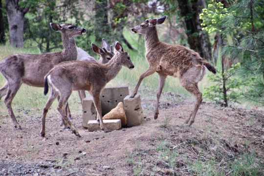 Deer politics ( and other animal games). It is best they forage and eat naturally for the most part – but love your watering hole.