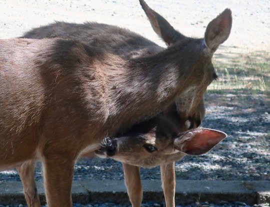 “I’ll scratch behind your ear if you will get my neck.” Grooming is one way deer families build and maintain ties. It starts with moms and fawns and continues even after the kids are fully grown.This short video captures the deer grooming each other. I found it humorous. Peggy said “so much for social distancing.”