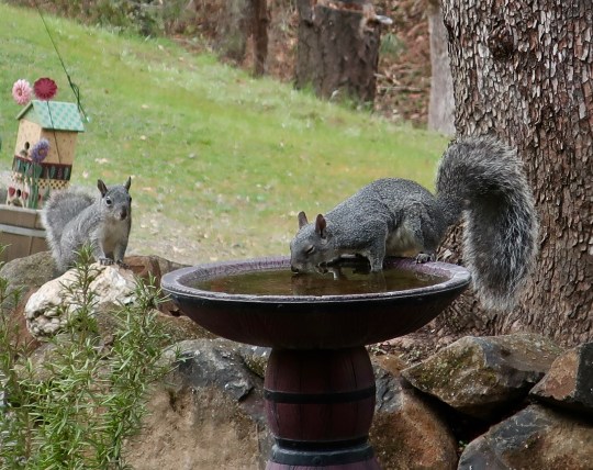 Although there is a natural spring down in the canyon, the deer seem to prefer the bird bath. We’ve learned that one deer can drink a lot.
