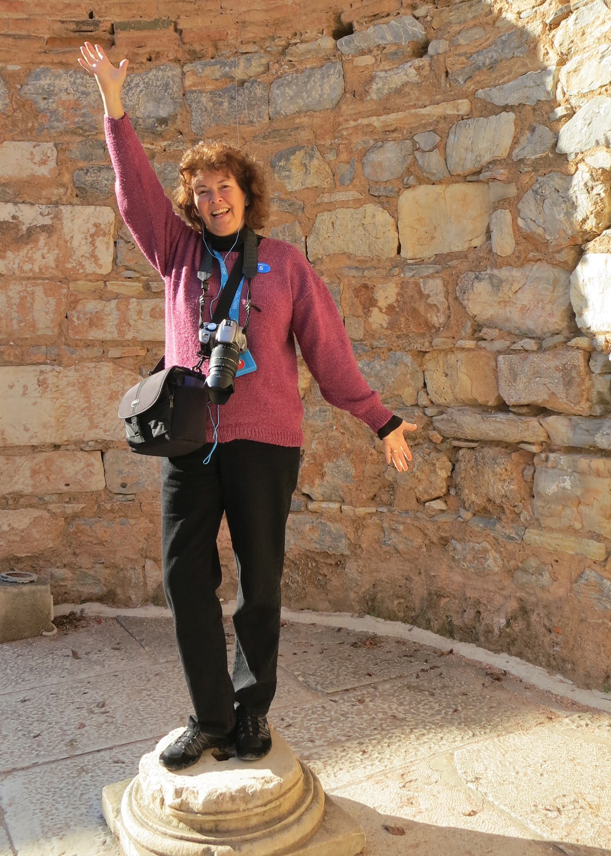 Peggy, another powerful woman, poses on a pedestal inside the Library of Celsus that may have once accommodated the Greek goddess Athena. I didn’t tell Peggy she was dancing on the grave of Celsus.