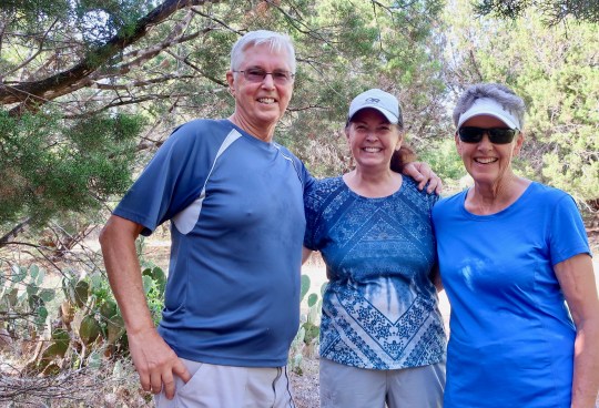 John and Frances share a moment with Peggy on a hiking trail in Sun City.