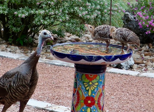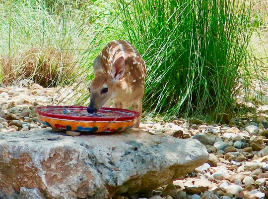 And a fawn stopped off to drink out of another bird bath strategically placed at fawn height. The wildlife made Peggy and me feel right at home!
