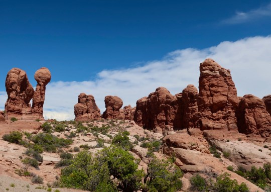 1. Thanks for taking me along to Arches. We were in the neighborhood last fall, but we were on the backside outside the park boundaries. I called it the middle of nowhere. I don’t remember now, but I think I may have forgot to finish that adventure. We did see some Arches formations peeking over the hills in the distance. It’s a fun place… though maybe not this time of year. I don’t do well with heat.
