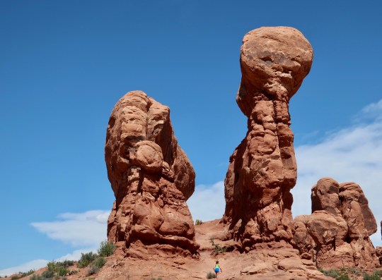 You can easily drive the road into Arches National Park and get a feel for the beauty and geology of the area. On a hundred degree plus day, it’s tempting to do just that! We didn’t, but I’ll confess that our walks were short.