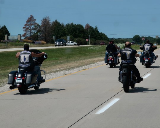 The Brothers of Morte (death), wearing leather jackets with an image of a skull with a candle burning out zoomed around us on their bikes heading for Sturgis. The message somehow seemed appropriate for the huge gathering during a highly contagious pandemic.