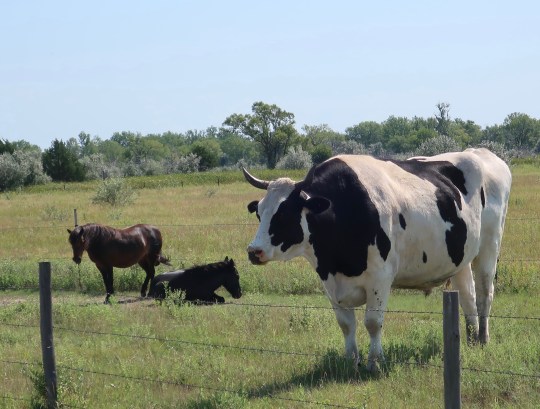 Had I been thinking, I would have stood next to the bull (on the other side of the fence) for perspective. He was indeed a big boy. Grin. Had Buffalo Bill still been around, the bull certainly would have been part of the show, right up there with Annie Oakley!