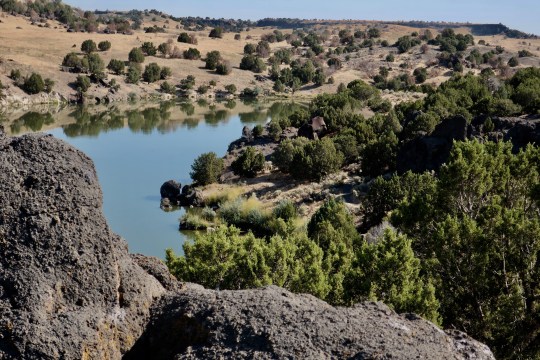 A cap rock made of lava dominated the heights on the opposite side of the river.