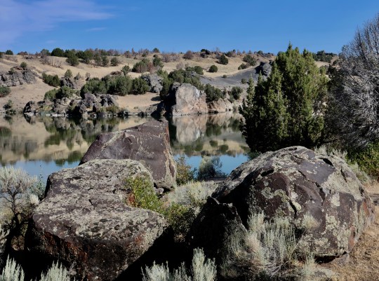 The name is something of a misnomer, since the attacks on wagon trains took place a few miles away. The pioneers were not happy with all of the large rocks in the area, however. They provided an ideal place to organize and ambush or to shoot arrows from behind. Peggy and I, on the other hand, were not worried about anyone shooting arrows at us and found the rocks and the river quite beautiful. I think you will agree…