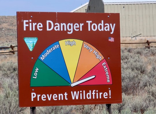Peggy and I noted this sign as we drove up to the Oregon Trail Interpretive Center in Baker City, Oregon. We spotted a wild grass fire in the distance.