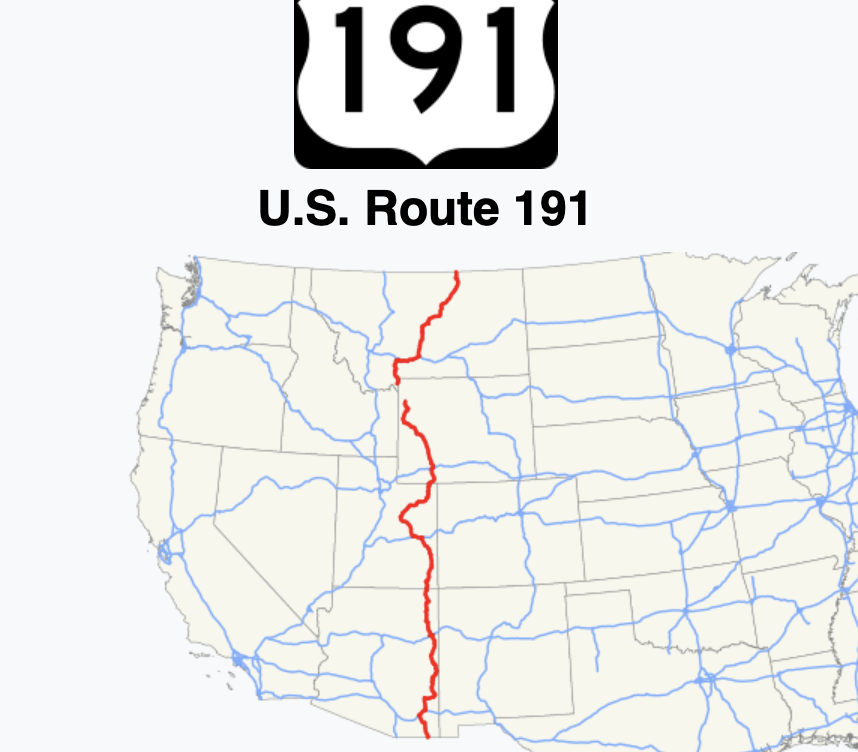 Highway 191 travels from the border of Canada to the border of Mexico.
