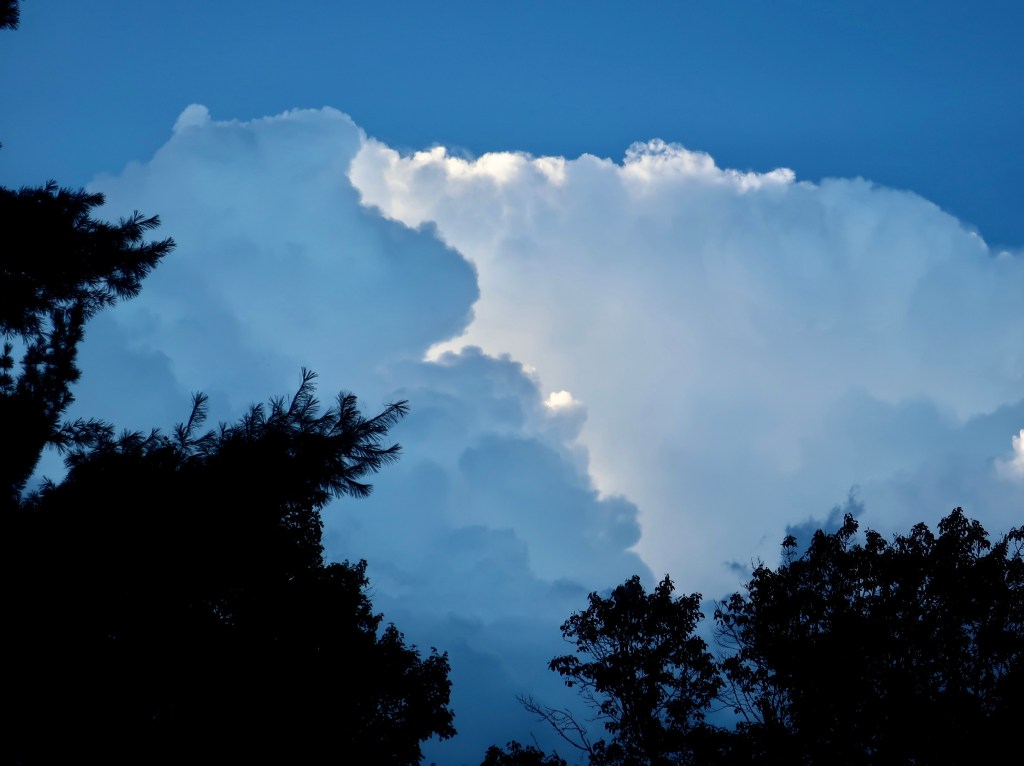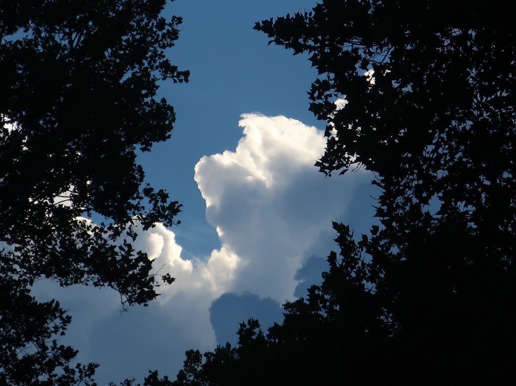 Nature is capable of putting on fantastic shows that can both awe and frighten. A thunder and lighting storm with its accompanying wind and rain is a prime example. Our grandson, Ethan, had spotted the towering clouds. They were looming over her and Clay’s home in northern Virginia. It’s also what I call our basecamp, a small attached apartment that we are using during breaks from wandering.