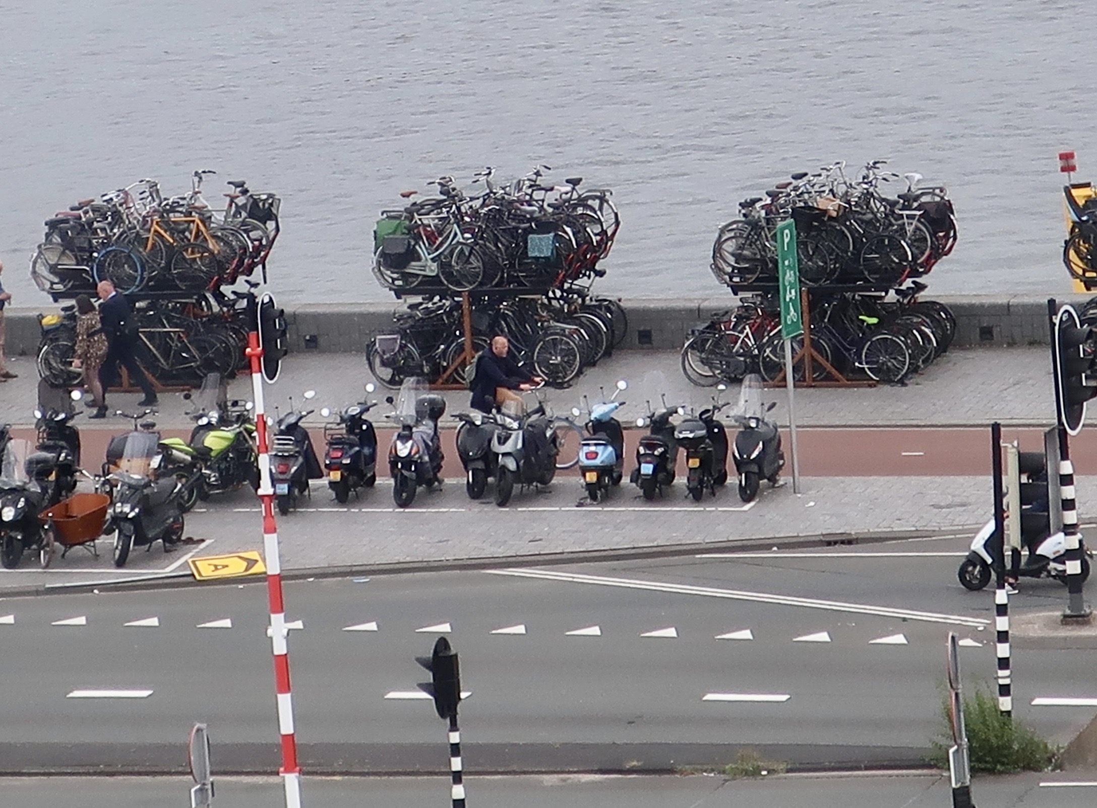 That’s a lot of bikes. Previously, I thought there were more bikes in Tokyo than anywhere else. My first day in Shinjuku was a work day. I was up early and I watched the sidewalks fill with bikes, rows and rows and rows of them on every sidewalk. Now that I’ve seen your shots from Amsterdam, I’m willing to believe Amsterdam has more. Also, they seem to have provided bike infrastructure, which Tokyo has not done so well with. I’d like to brag about Portland, which has done a great job with using and providing for bikes. But our city’s got nothing on Amsterdam.