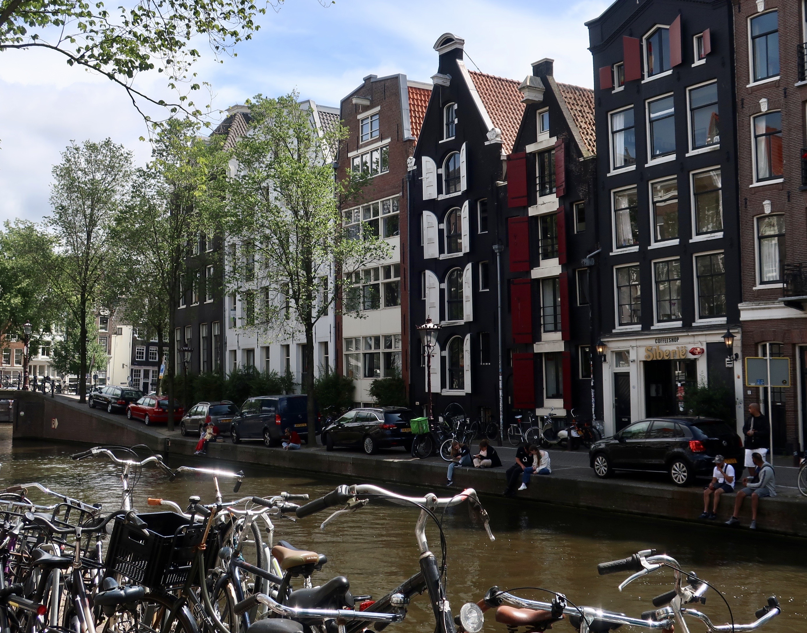 Peggy and I were in Amsterdam this past summer in preparation for our boat trip up the Rhine River. Actually, we had planned the trip two years earlier to celebrate Peggy’s 70th birthday. Our kids and grandkids were joining us. And then covid had hit. We were fortunately able to reschedule it. The fact that our boat left from Amsterdam was a plus. We planned to spend a few days in the city before and after the trip to take advantage of our luck. The photos for today’s post and next Friday’s will focus on our time in the city. Today, I will feature canals, street scenes and bikes. Next Friday will be devoted to the city’s unique buildings and other things we found interesting and fun. Note: Peggy didn’t carry her Canon camera while we were in Amsterdam. She had decided to experiment with her iPhone, examples will be in the next post. 🙂