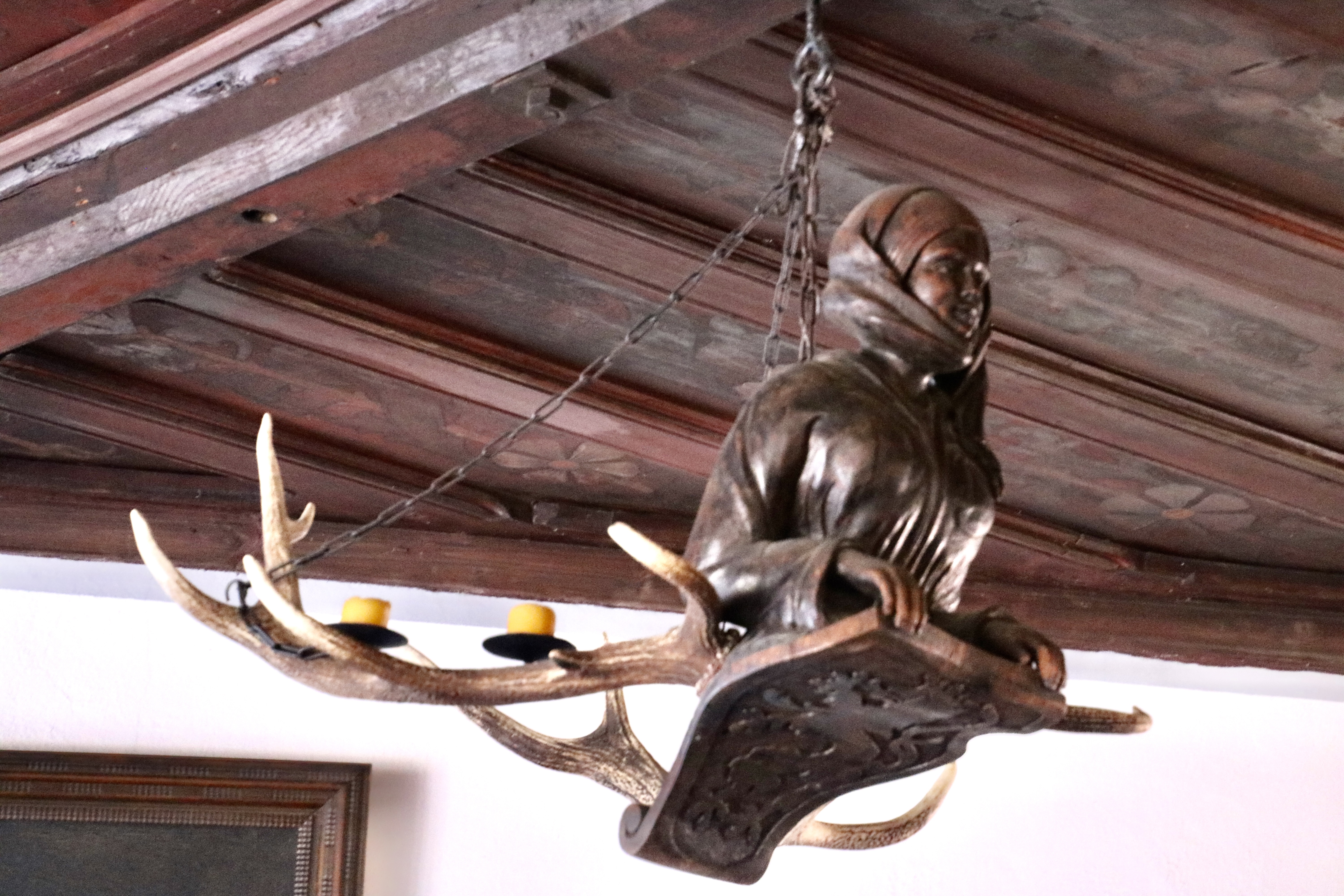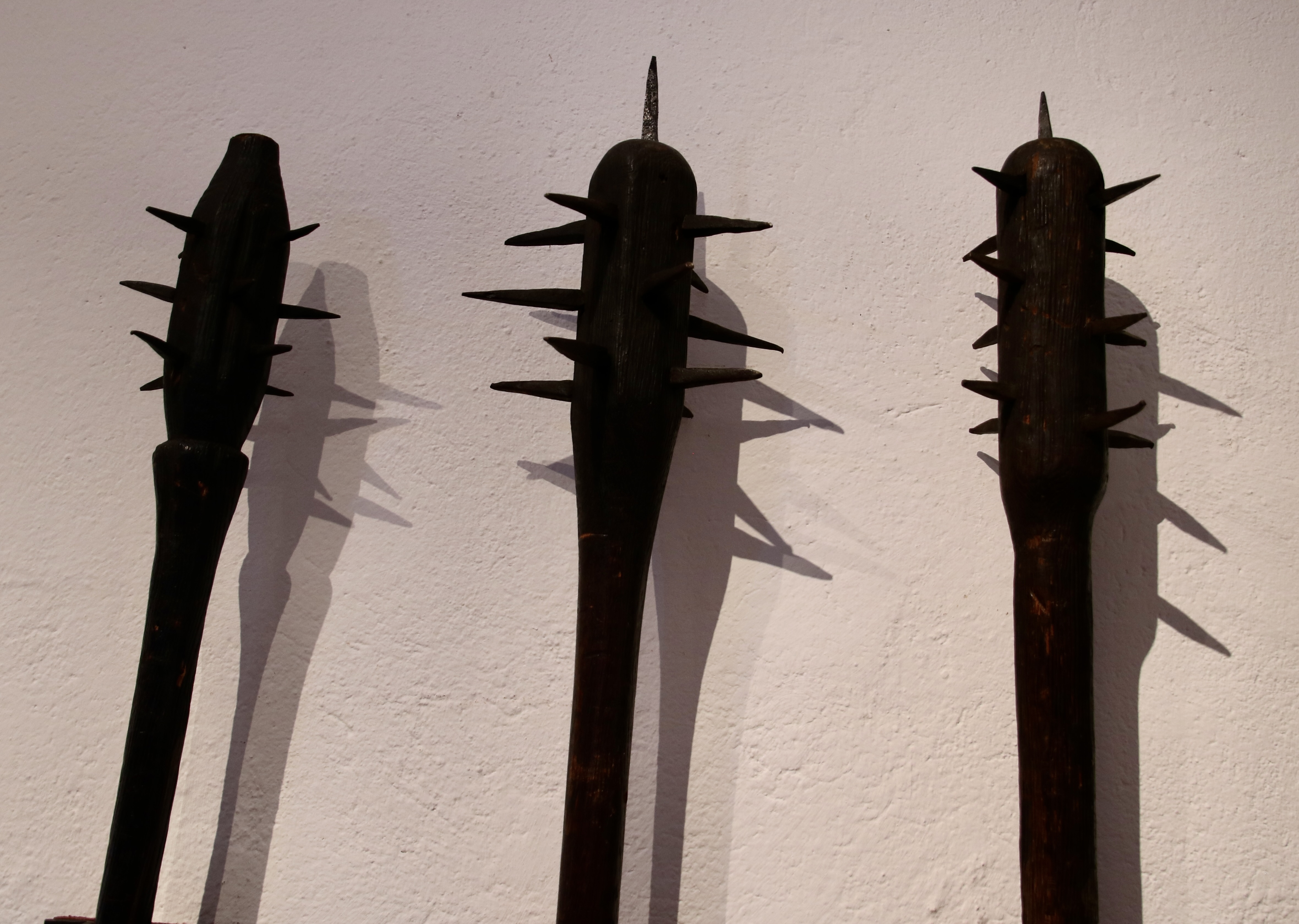 There’s no question: I’d take the furry dude. If all else failed, he could tickle his opponent to death. I wondered if the ‘flying nun’ might have been a figurehead taken from the prow of a ship. The antlers look like an afterthought.