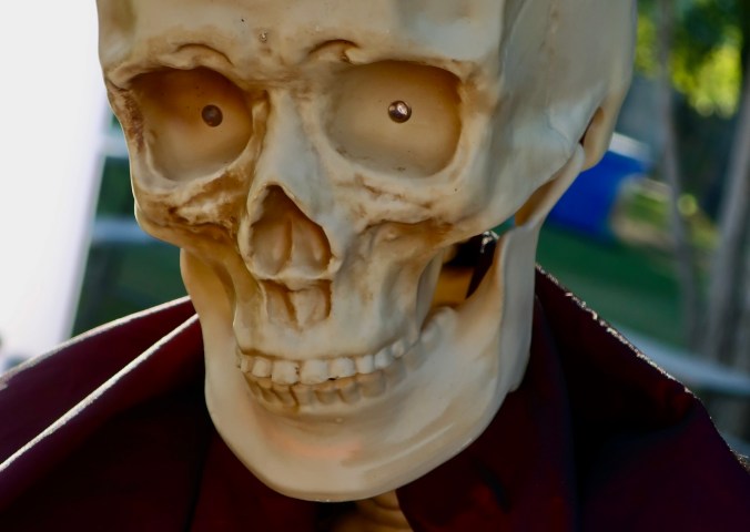 Old West skeletons playing poker with their pistols close-by are scary. The guy down on the left end is already dead, heh-heh. His problems can’t match the woman in red, however, since they are all dead. She just lost her hand, always a bad sign in high-stake poker. Wait, it is on the arm of the guy sitting opposite. The folks at the Pine Near Campground in Winthrop, Washington had gone all out to decorate for Halloween. I asked the owner about the name. “Legend has it,” he told me, “the 4-year-old daughter of the first owner had urged her parents to call it pine near, which was how she pronounced pioneer.” Her parents honored her request.