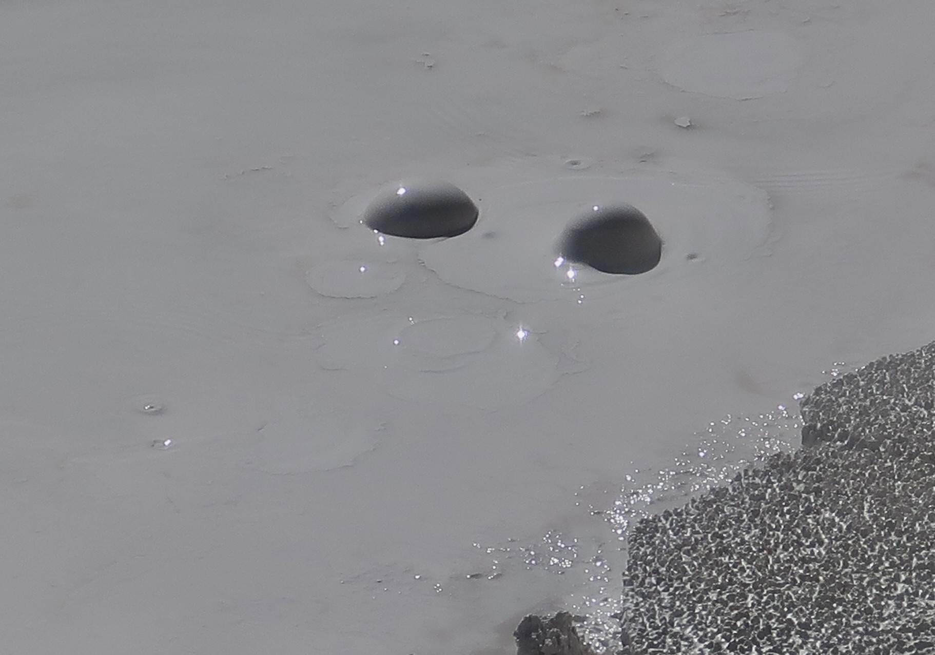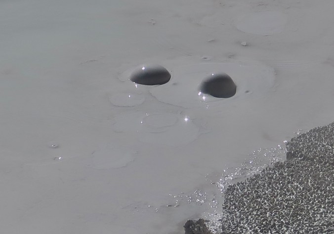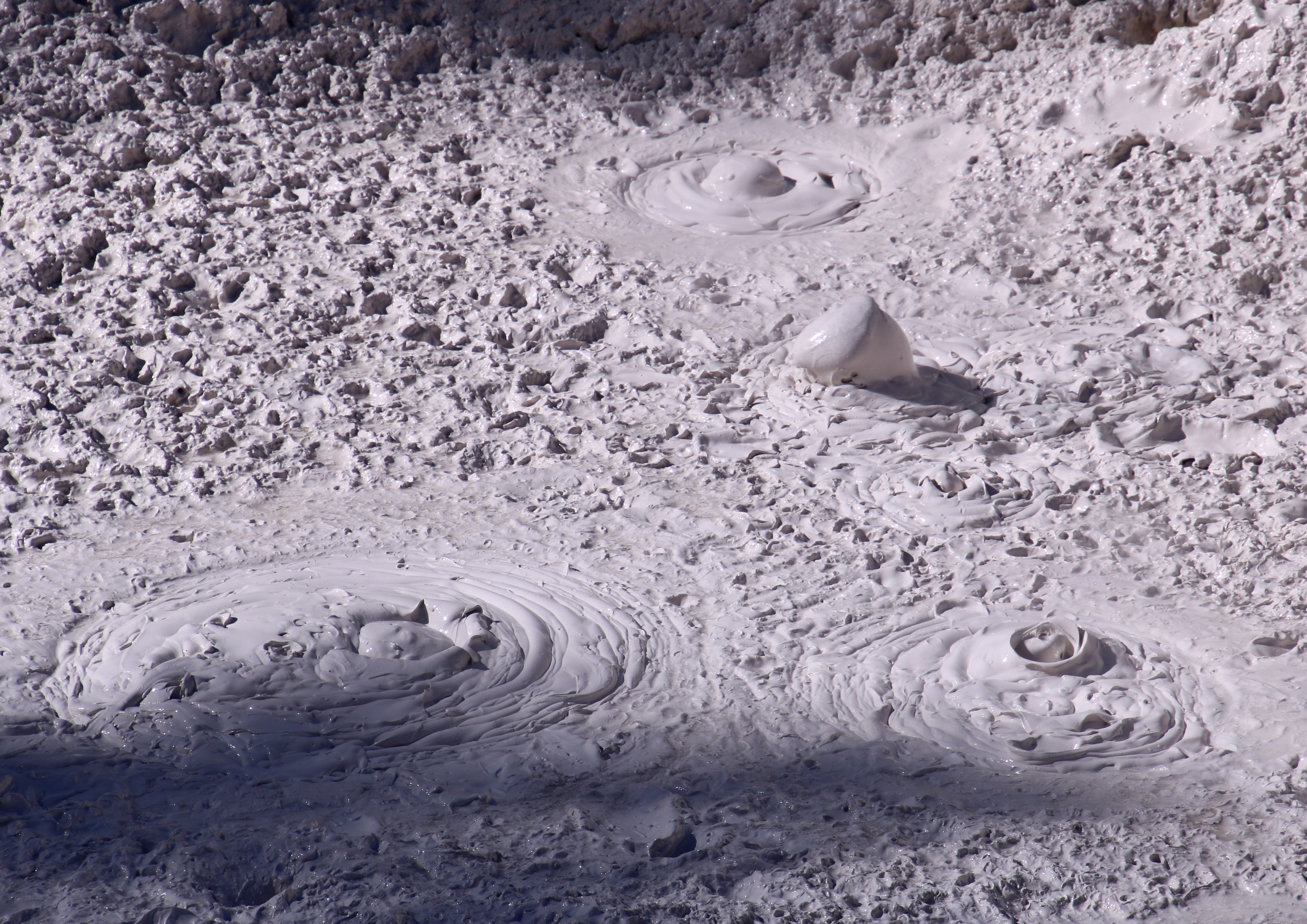 In Yellowstone we came across mud pots with gas bubbling up creating a brew that looked and smelled like something witches would whip up . “‘Double double toil and trouble/Fire burn and cauldron bubble” Shakespeare’s three witches would have been proud of this concoction.