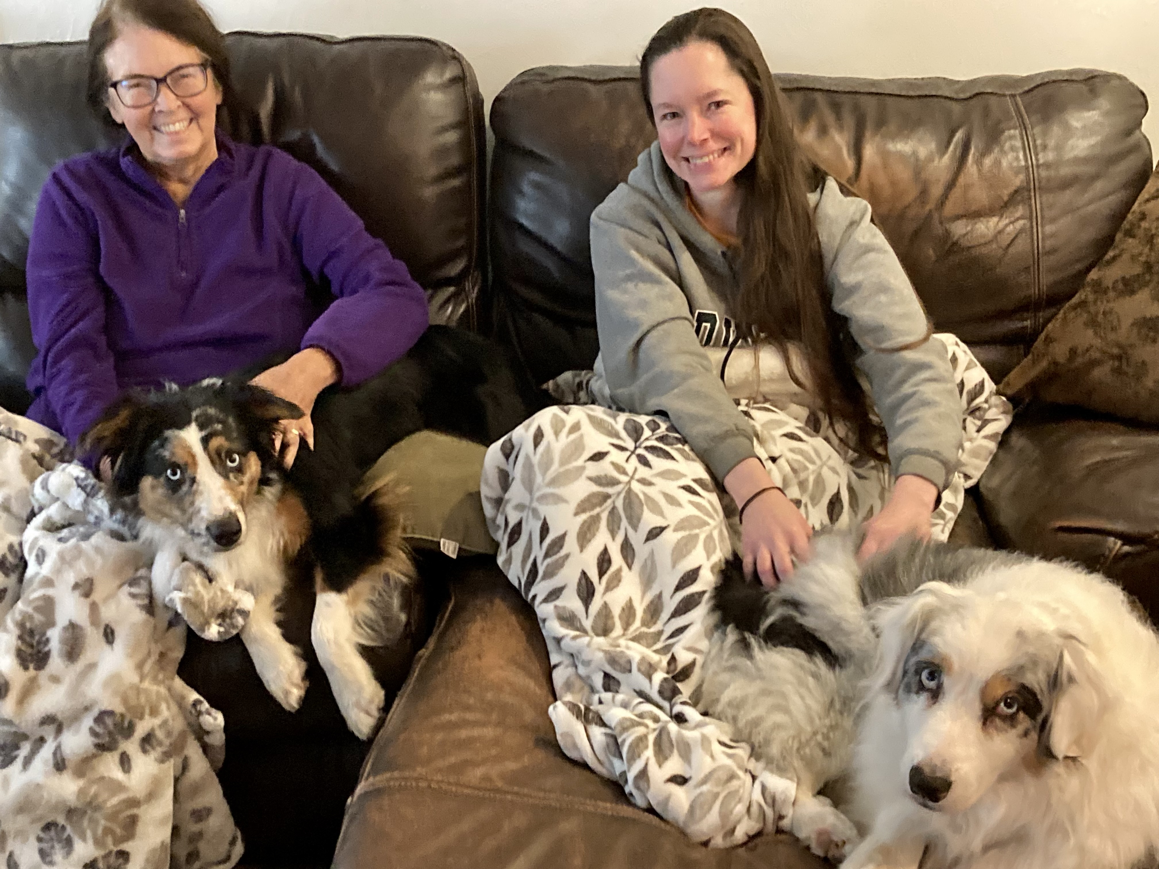 Our niece, Christina, and her two beautiful dogs, Zoe, the princess on the left, and Bella, the empress dowager, on the right. Christina, in addition to being a relative, is a good friend, so good that she zipped down from her home in Tumwater, Washington to help us pack when we were moving from Oregon to Virginia.